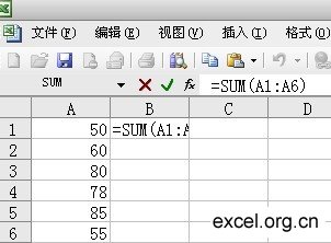 如果要统计A列中,A1到A6的总和,显示在B1中,只要填写 =SUM(A1:A6)