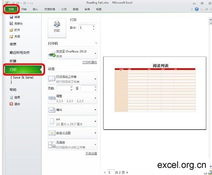 在 Excel 2010 中,依次单击“文件”和“打印”,然后即会显示“打印预览”。